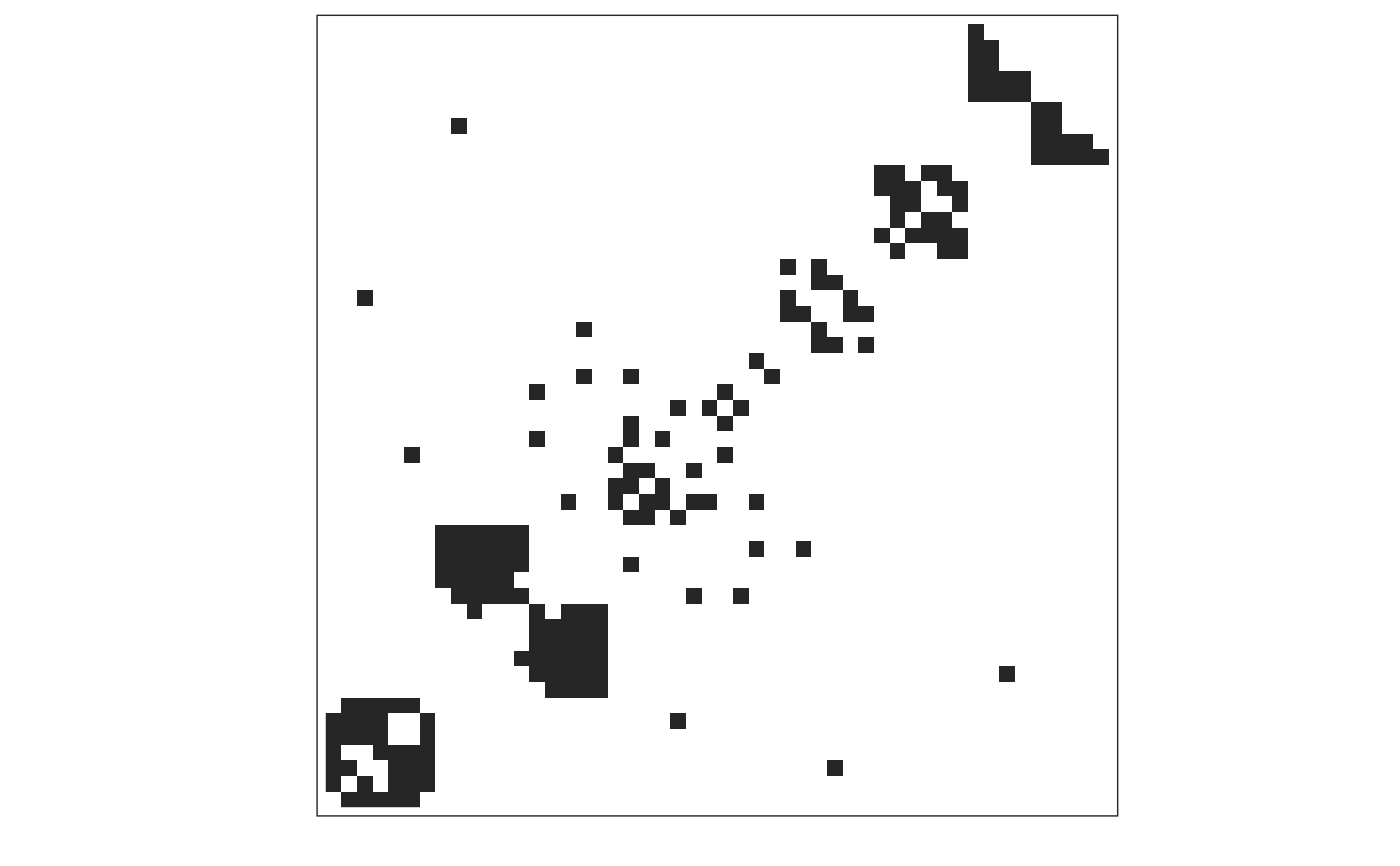 set.seed(12345) graph <- netgen() adj_plot(graph)